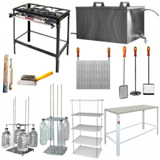 Tanque Pasteurizador/Procesador, Placa desuerado, Anafe-Cocina Semi industrial, Termómetro, Lira. Agitador, Palita Cargadora, Garfio Agitador, Moldes para Quesos, Prensa para quesos, Estante para quesos, mesa inoxidable.